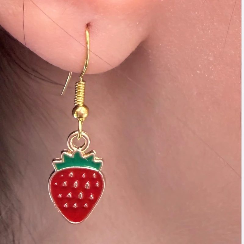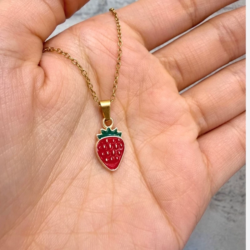 ست گردنبند و گوشواره طرح توتفرنگی با طراحی فانتزی و دخترونه 🍓