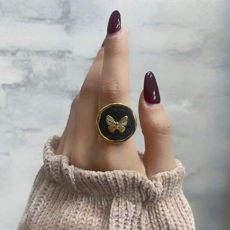 دستهبندی: انگشتربرچسبها : انگشتر میناکاریطرح پروانهانگشترجنس: استیلرنگبندی: سفید،صورتی،مشکیسایز: فری(قابلیت تنظیم سایز از پشت)نوع: میناکاری